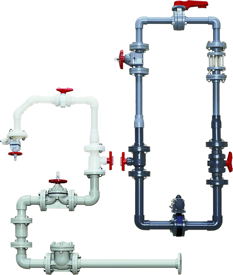 ????專業(yè)生產(chǎn)三大系列產(chǎn)品(閥門、管材/管件、泵)&五種材料(CPVC、UPVC、PVDF、PPH、FRPP)